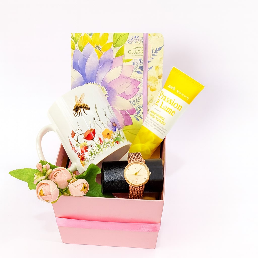 Bright, inspiring, and beautifully refined — the Golden Bloom Gift Box is designed for the woman who embraces elegance in every detail. This thoughtfully curated collection blends self-care, creativity, and timeless charm, making it the perfect choice for birthdays, thank-you gifts, or moments that call for something truly special.